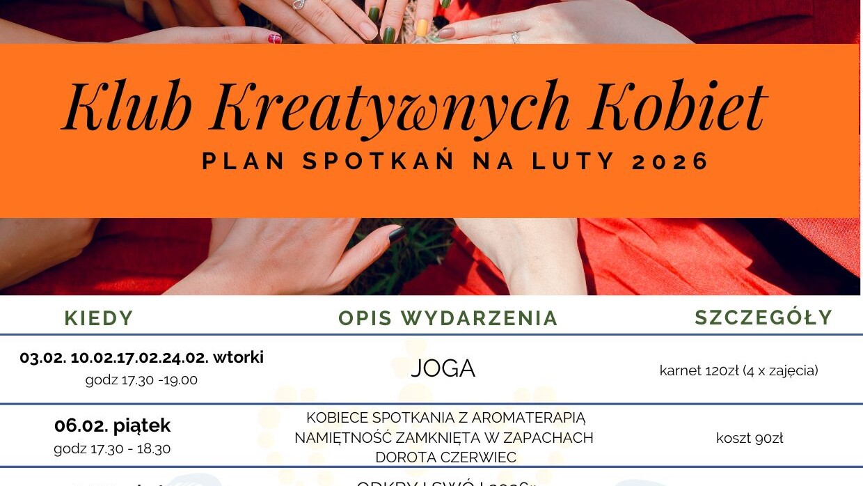 Z ogromną radością zapraszamy Was na nowy sezon Klub Kreatywnych Kobiet w Sosnowcu, który startuje już w lutym 🌸